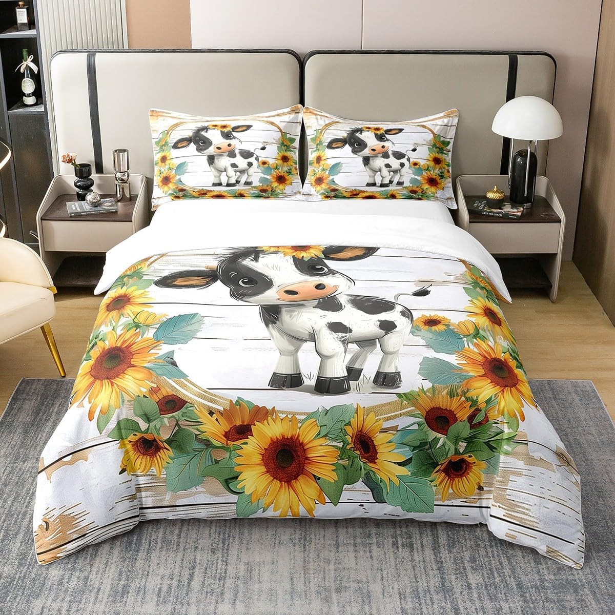 Package Include: Duvet Cover and Pillowcase, no comforter or sheet Quality duvet cover set pattern bedding set, simply decorating your rooms any time you want, bringing you fresh feel for year round use Material: Made from 100% Cotton Size Information: Twin size 2pcs duvet cover set: 1 Duvet Cover 68" x 90" 173 x 229cm, 1 pillowcase 20" x 30" 51x75cm Full size 3pcs duvet cover set: 1 Duvet Cover 80" x 90" 200 x 229cm, 2 pillowcase 20" x 30" 51 x 75cm Queen size 3pcs duvet cover set: 1 Duvet Cover 90" x 90" 229 x 229cm, 2 pillowcase 20" x 30" 51 x 75cm King size 3pcs duvet cover set: 1 Duvet Cover 104" x 90" 264 x 229cm, 2 pillowcase 20" x 36" 51 x 92cm Personalize your bedroom: Beautiful design and colorful print, making your bedroom unique and bringing you a wonderful dream Washing instructions: Machine wash separately in cold water, hang dry, do not bleach Occasion: The cute soft duvet cover bedding sets designed for children, adults, men, women, teens. This duvet cover set is also suitable for all seasons, spring, summer, autumn and winter. Warm Tips: There may be some slight differences between the color tone of the pictures and that of the actual items due to lighting effects, monitor's brightness, etc.